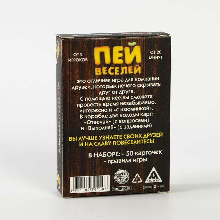 Купить игра для компании "пей веселей" 50 карт от 180 руб. с доставкой до пункта выдачи в Самаре. Интернет магазин ДекаМаркет. Оплата при получении.