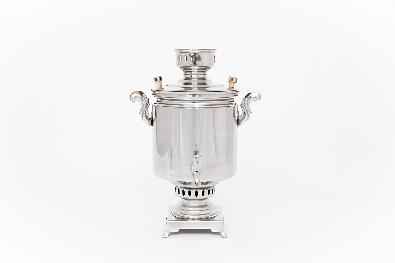 Изготовлен из пищевой нержавеющей стали Aisi 304 - этот металл не требует дополнительного внутреннего лужения емкости для применения в пищевой промышленности. При мытье и обслуживании нашего самовара, не стоит переживать за сохранность внутреннего защитного оловянного слоя, т.к нержавеющая сталь сама по себе уже пищевая и лужение ей просто ненужно!